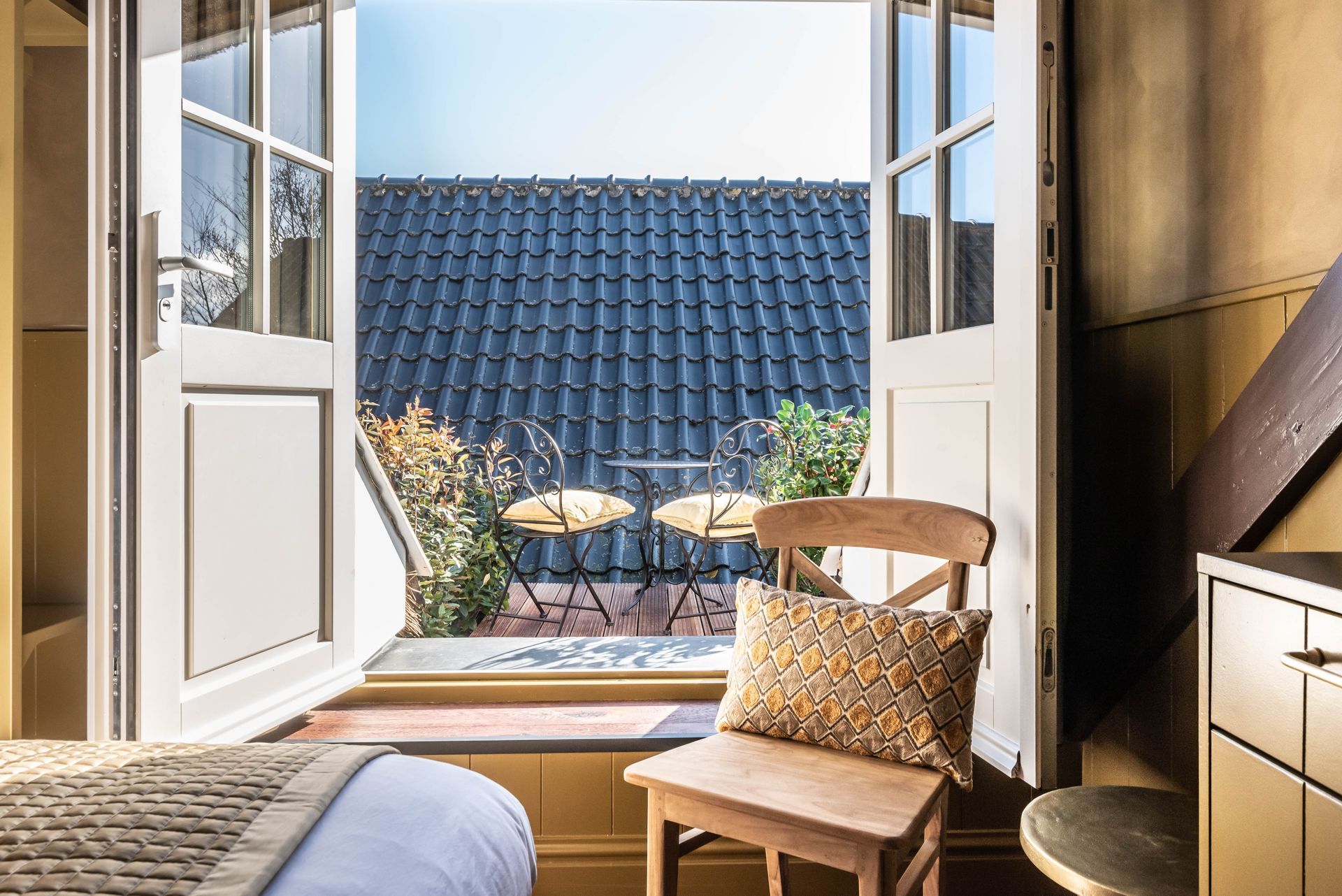 Maximaal zes volwassenen kunnen bij ons verblijven (de boerderij is niet ingericht voor kinderen onder 12 jaar). De kamers beschikken allemaal over een eigen badkamer met inloop douche en toilet. In de gezamenlijke tuin zijn diverse zitjes waar je lekker kan genieten van de natuur.