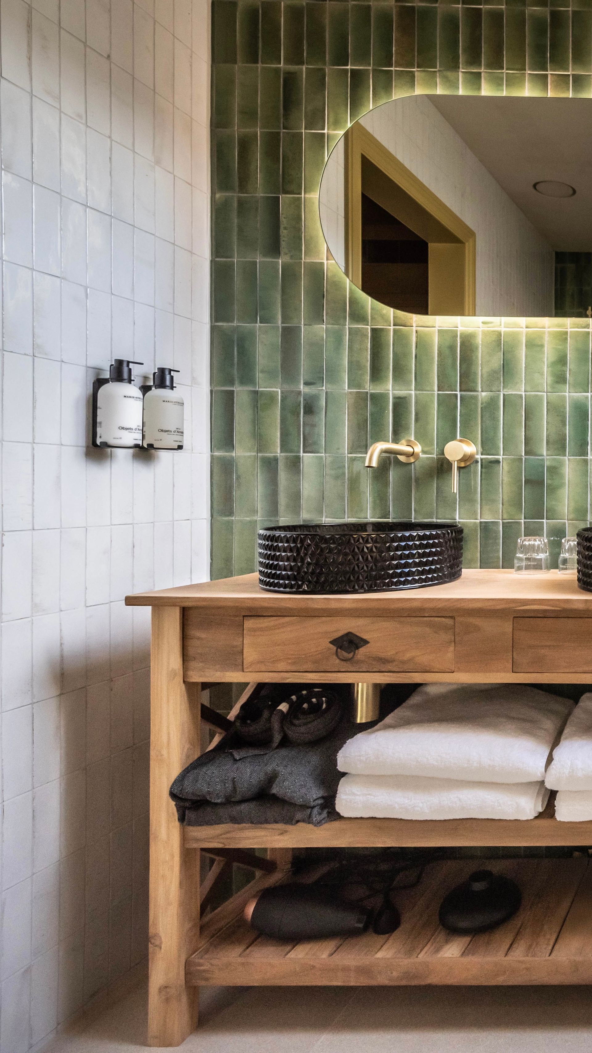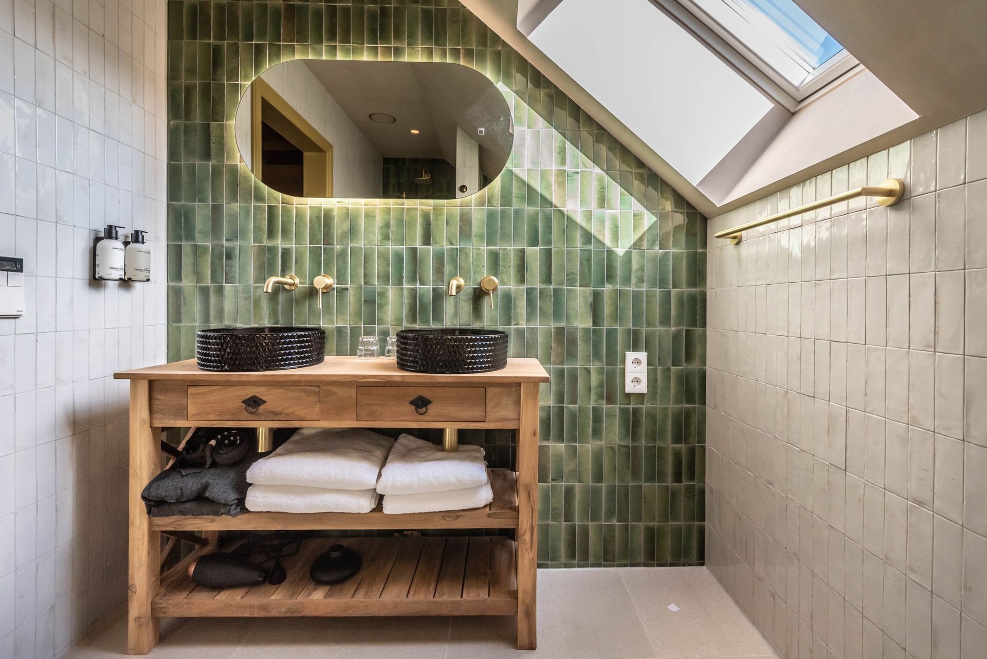 Een heerlijk douch met zijde zachte tegels met vloer verwarming en feel good spiegels.